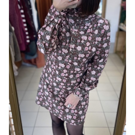 • Robe en velours marrons a motifs floraux