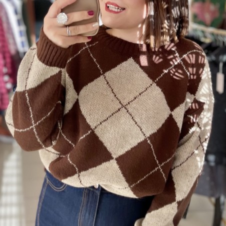 • Pull en maille épaisse marron